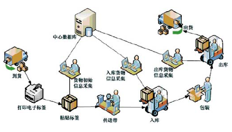 2)在RFID系統(tǒng)中應(yīng)用貨物包裝、貨位兩種電子標(biāo)簽來輔助進行倉庫管理,提高效率;